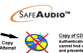 The first audio CD that can not be copied from one computer products, according to the system SafeAudio (see Safeaudio, still protected cd ) has already sold one hundred thousand copies according to the company that has not yet revealed what the title is, but already has a drawback is not insignificant. The system operates according to a scheme that inserts deliberately errors, offset being played, but copied to produce data on the hard disk unusable. According to tests carried out by SafeAudio no one will notice the difference, but the hi-fi experts argue that in this way the signal distortion, since it no longer has significant amounts of data to listen, is inevitable.