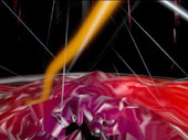 The Well is a place deep and dark, a kind of well where you are on the water at the bottom of it. But as soon as you hear the sounds through a microphone or CD player, trigger the violent reactions that agitate the water and generate bursts of colored light signs of strange entities that react to a possible request for help. Taking advantage of a plug-in Shockwave, this work has the distinction of accepting input sound, contextualizing them in a fantastic situation, but still literarily credible and disturbing.